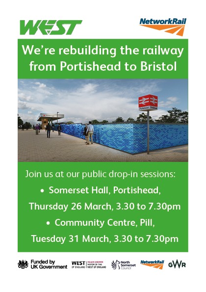 Public drop-in meetings at Portishead and Pill. See News March 2026